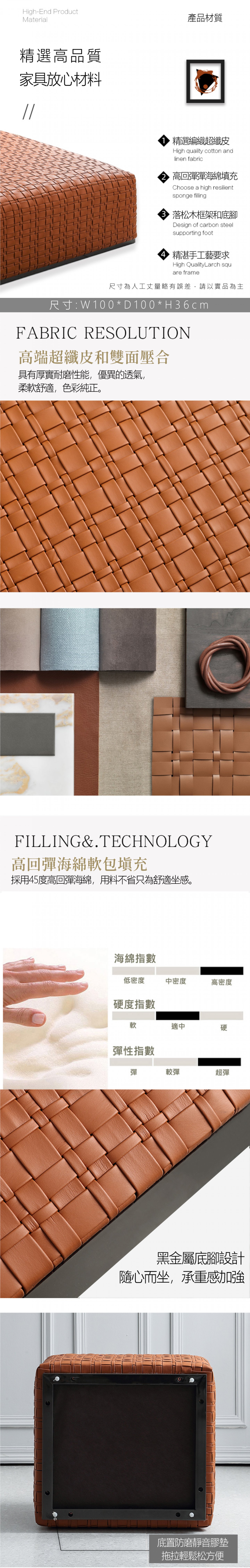 尺寸 :W100*D100*H36cm 顏色:咖啡色.黑色 材質:超纖編織皮革 請消費者挑選色樣與確認尺寸 下訂後約30~40天可交貨 付款方式 : 臨櫃匯款 / ATM轉帳 線上刷卡(一次付清 / 3期0利率) ATM自動櫃員機 / 超商代碼 全館可享3期0利率/共22家銀行