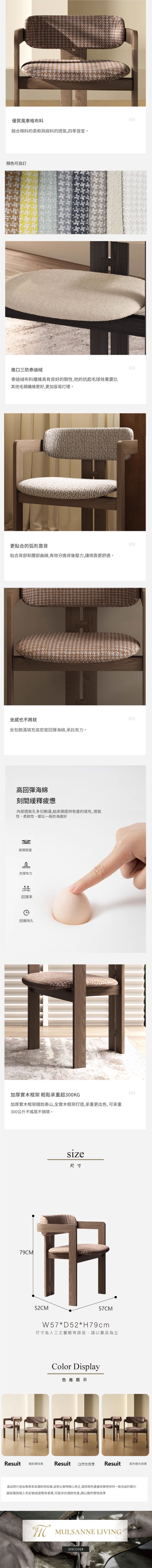 - 材質:棉麻布+白蜡木實木椅架+高回彈海綿