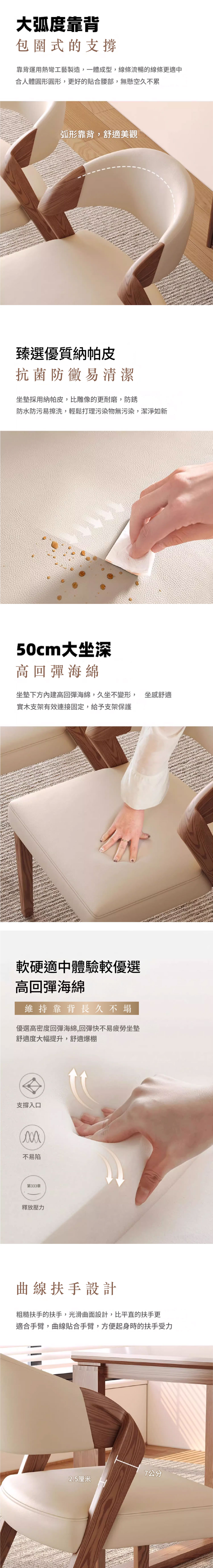 - 材質:納帕皮革+白蜡木實木椅架+高回彈海綿