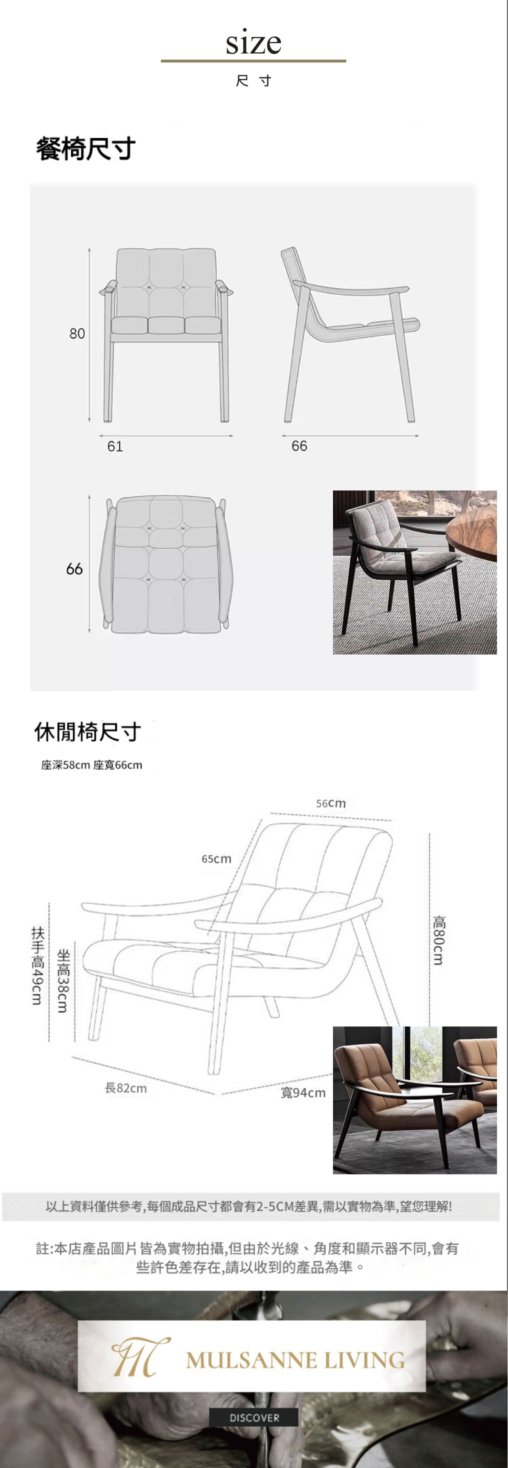 - 尺寸:單椅W61XD66XH80cm 休閒椅W82XD92XH80cm