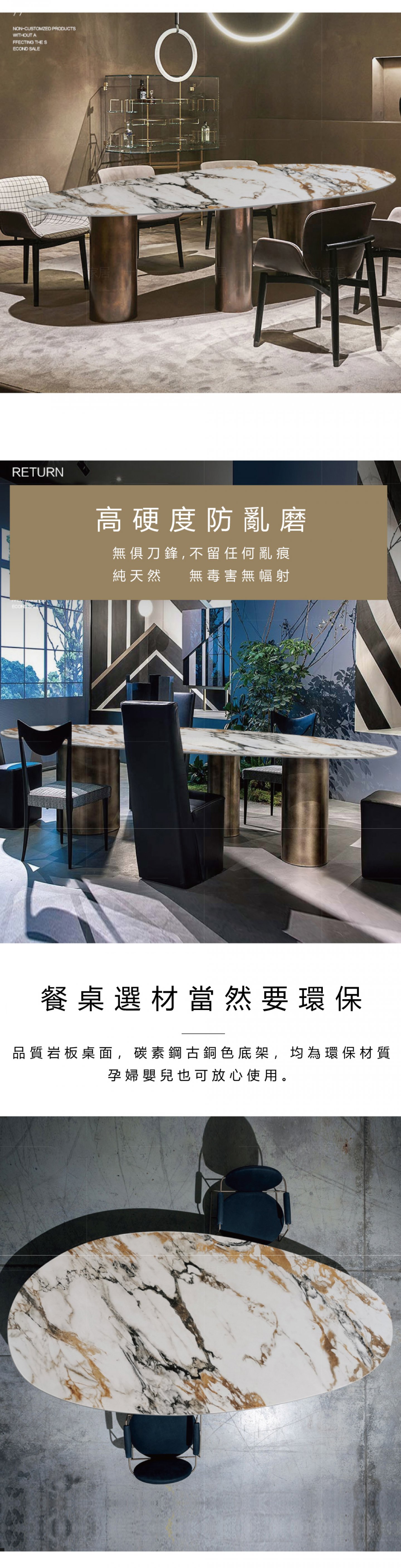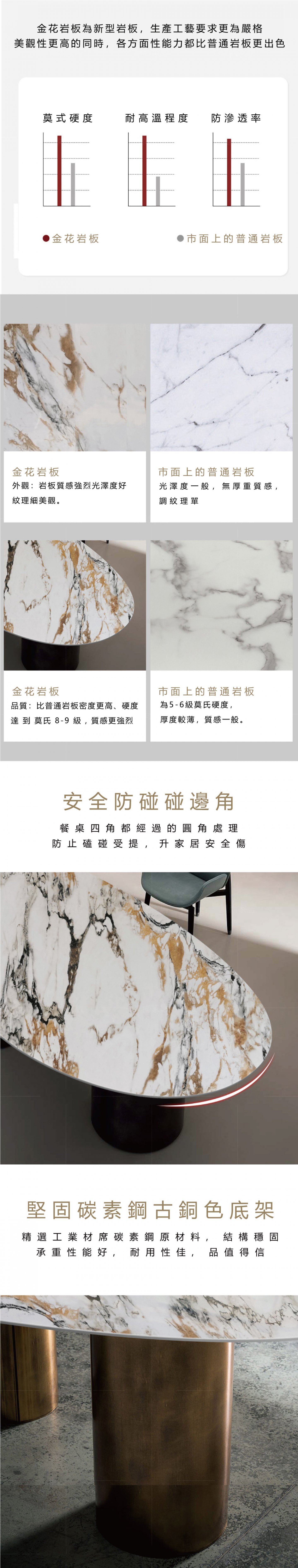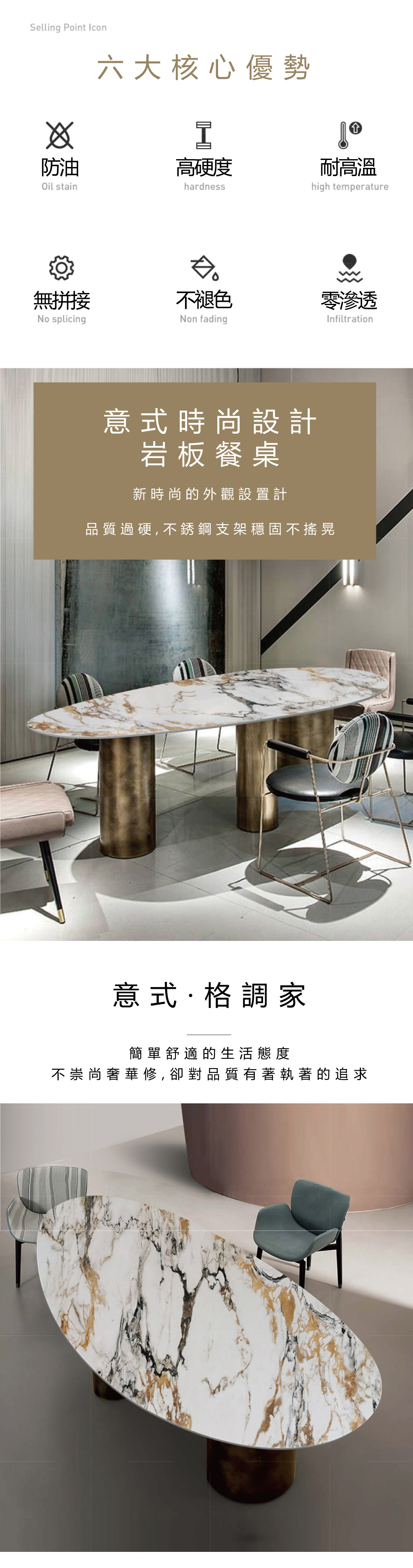 - 材質: 不鏽鋼鈦金腳架+義大利岩板桌面