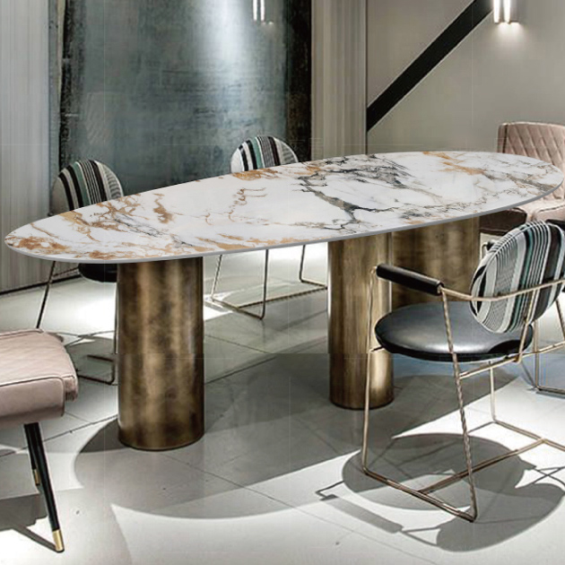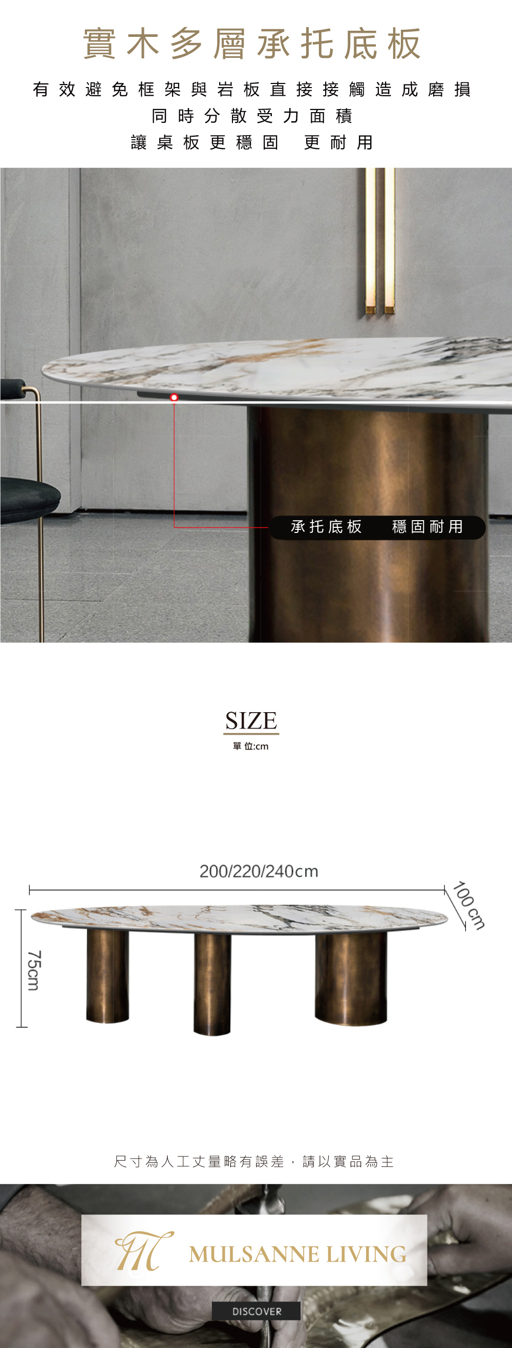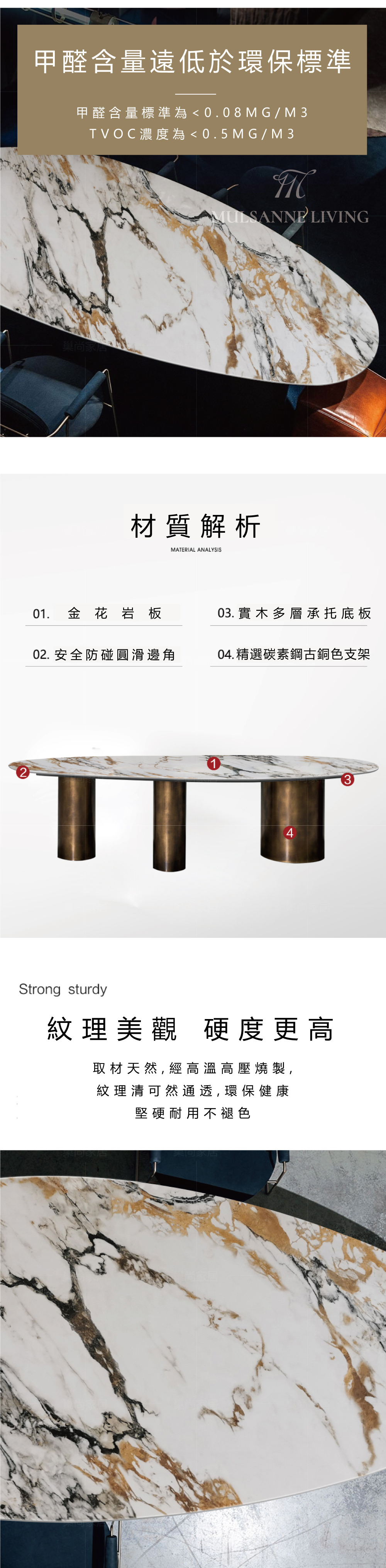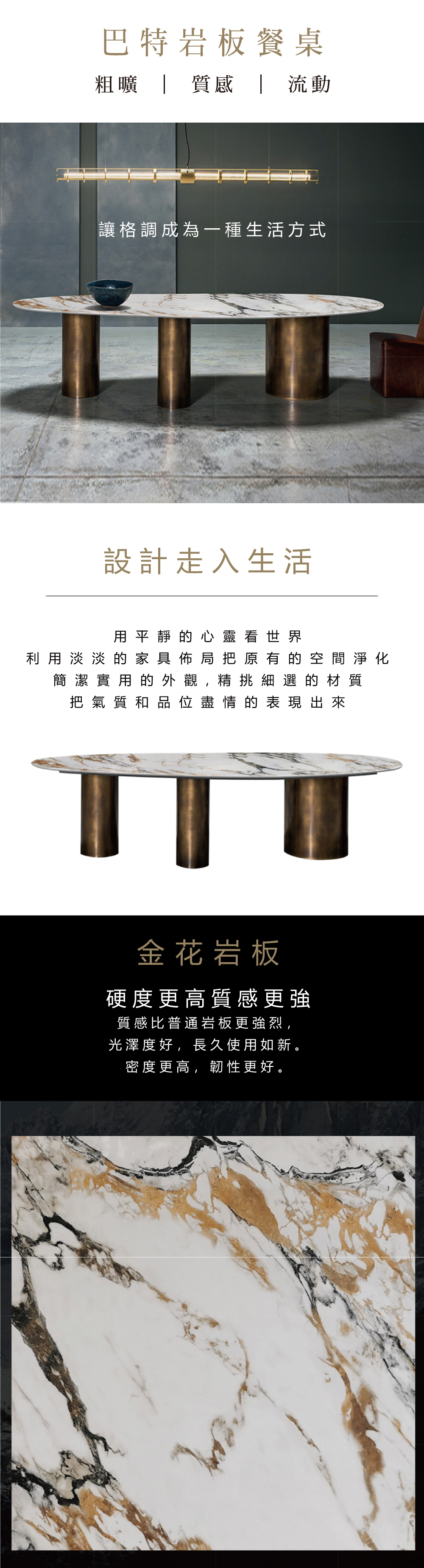 - 材質: 不鏽鋼鈦金腳架+義大利岩板桌面