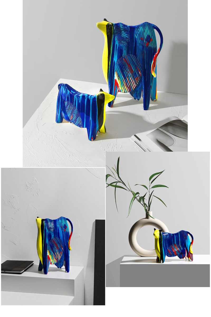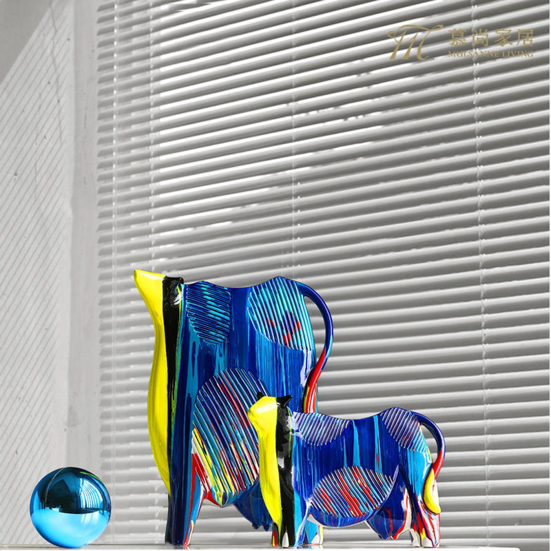 牛轉乾坤彩色陶瓷擺件
