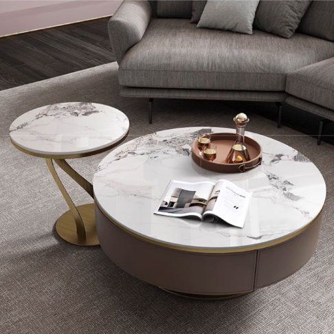 顏色:桌面-胡桃木皮/大理石紋 茶几腳-香檳金/黑鈦色